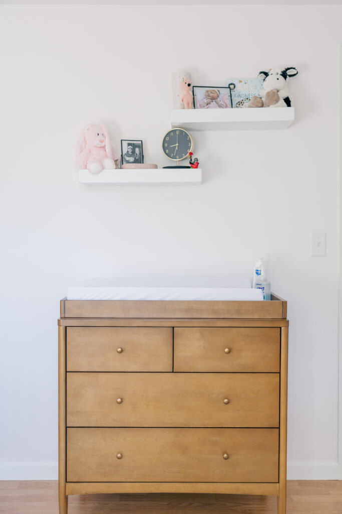But if you see stuff in a room that would bother you in a photo (think laundry piles, diaper cream bottles, Amazon boxes – you know, life), go ahead and tuck that away. Choose two to three spaces you love most for photos – usually the nursery, master bedroom, or living room are great options.
